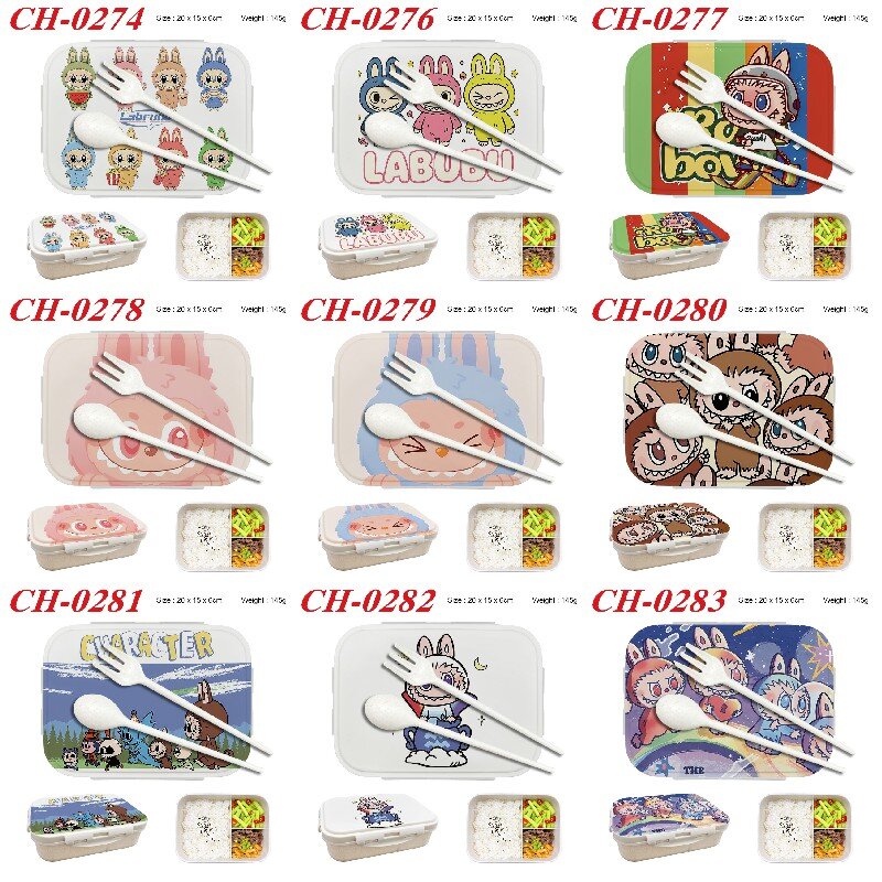Labubu anime Plastic Lunch Box with Fork Spoon Kids Food Case