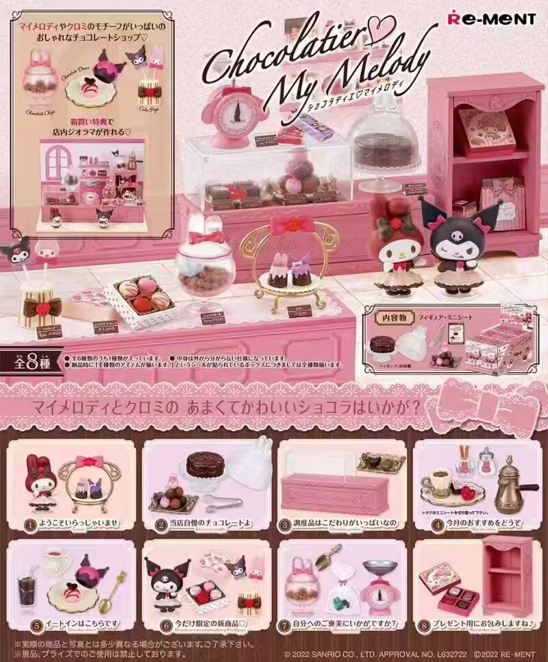 > Anime Toys > Hello Kitty > 8pcs/set Re-Ment Sanrio My Melody Kuromi Chocolate Workshop Miniature figures