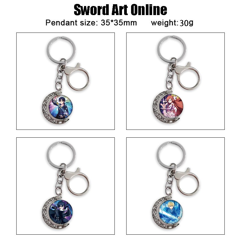 > Anime Toys > Sword Art Online > Sword Art Online Two-sided Rotatable Round Crystal Key Chain Ring