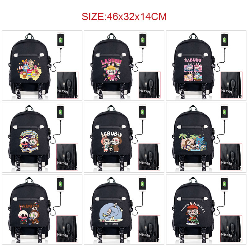 Labubu USB charging laptop backpack school bags