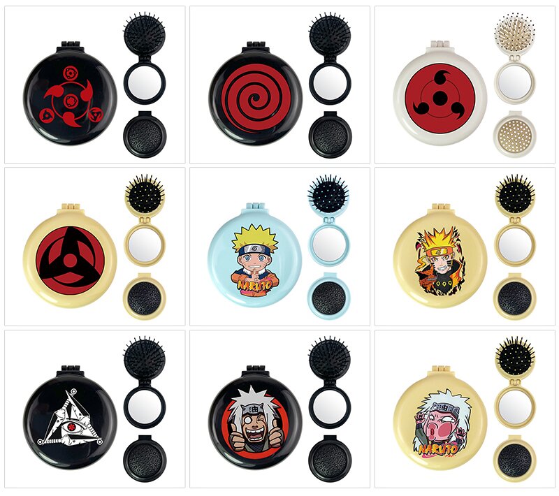 Naruto anime folding portable comb mirrorrs